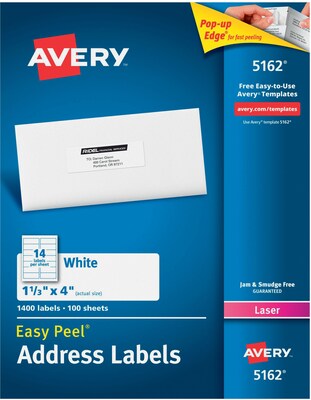AVERY - R 5162 WHITE EASY PEEL LASER ADDRESS LABELS; 1-1 - 3X4, 1400 - BOX