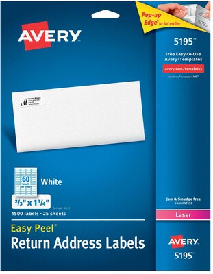 AVERY - R 5195 WHITE LARGE RETURN ADDRESS LABELS; LASER, 2 - 3 X 1-3 - 4, 1500 - BOX