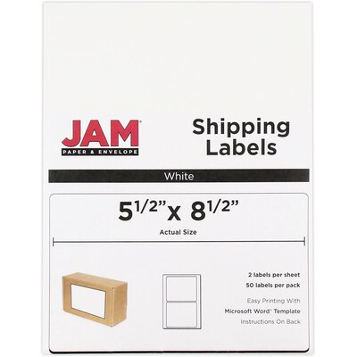 JAM PAPER - R SHIPPING LABELS, HALF SHEET, 5.5 X 8.5, WHITE, 50 - PACK - 359430339